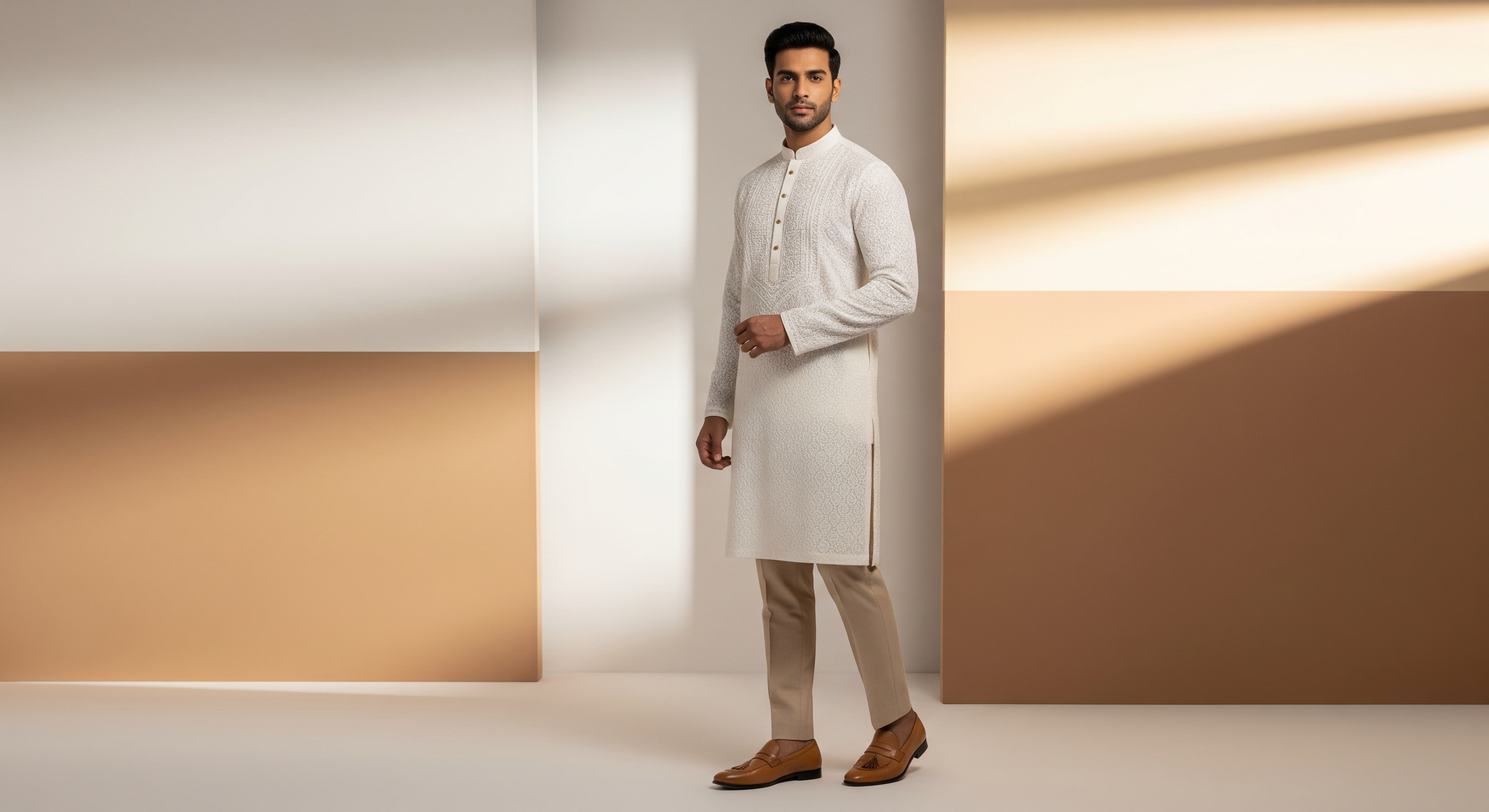 Men's Short Kurta - Ivory Beige
